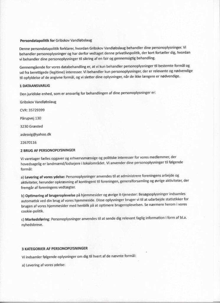 Gribskov Vandløbslaug persondatapolitik